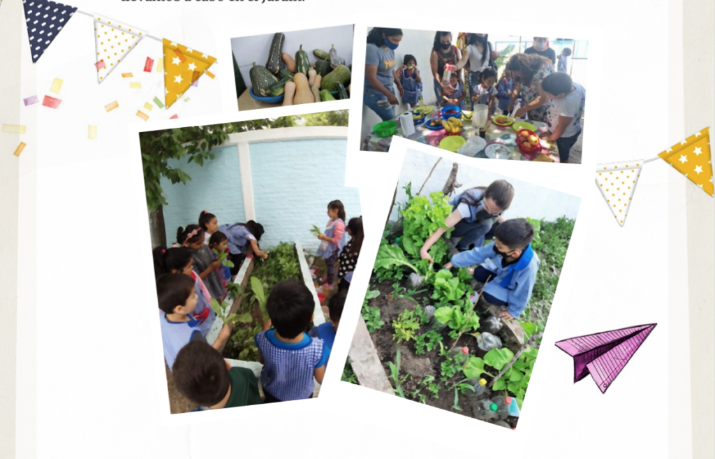 Nosotros el año pasado, en esta vuelta, el arenero no lo íbamos a usar, entonces transformamos nuestro arenero en un vivero, que tuvo caléndulas el año pasado, que se entregaron en el Día de la Familia. Y también el año pasado plantamos unas semillas de luffa, que es una esponja vegetal, y este año nos encontramos, después de todo el verano, que la luffa, que se va trenzando como la calabaza, estaba por todo el vivero, y ya hay unos frutos muy grandes. Es una gran alegría ver este proceso con los niños y con los papás.